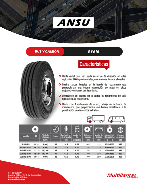 Llanta 215/75R17.5 18Pr 135/133J By616 Dir Ansu
