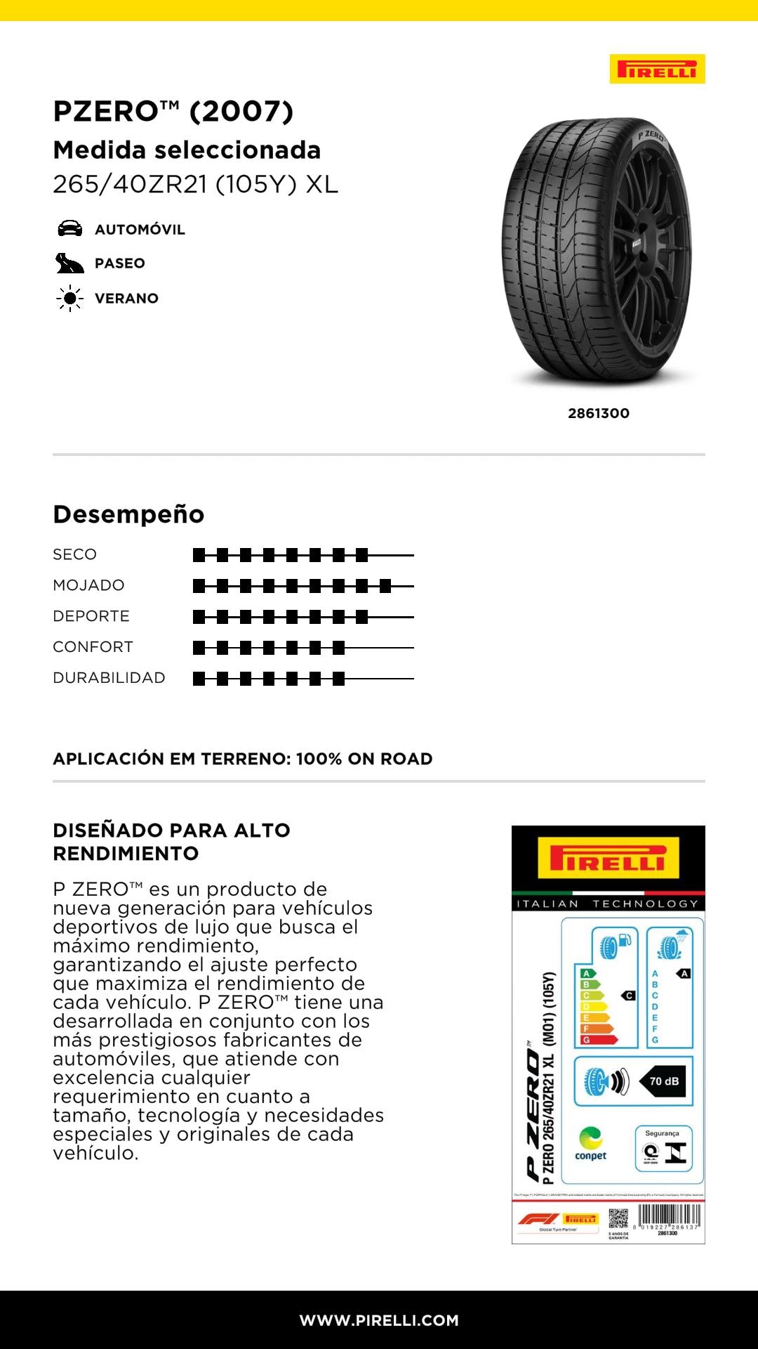 P ZERO™ es un producto de nueva generación para vehículos deportivos de lujo que busca el máximo rendimiento, garantizando el ajuste perfecto que maximiza el rendimiento de cada vehículo. P ZERO™ tiene una desarrollada en conjunto con los más prestigiosos fabricantes de automóviles, que atiende con excelencia cualquier requerimiento en cuanto a tamaño, tecnología y necesidades especiales y originales de cada vehículo.