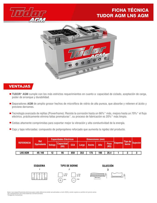 DESCRIPCIÓN TUDOR® AGM es una batería con avanzada tecnología ideal para vehículos Start-Stop o de alta demanda de energía. Gracias a su potencia d...