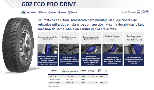 Ver todos los detallesDESCRIPCIÓN Neumático para eje de dirección con innovadora estructura y compuestos , y con una banda de rodadura diseñada para proporcionar resiste...