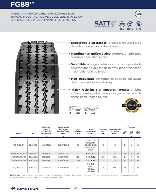 - Sólidas ranuras circunferenciales, contorno redondeado y un perfil de la banda de rodadura optimizados para garantizar una mayor resistencia a los desgarros.