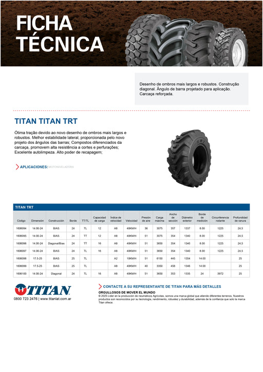 DESCRIPCIÓNEs un neumático radial sin cámara (TL) diseñado para aplicaciones fuera de carretera (OTR) en maquinaria pesada como cargadores y motoni...