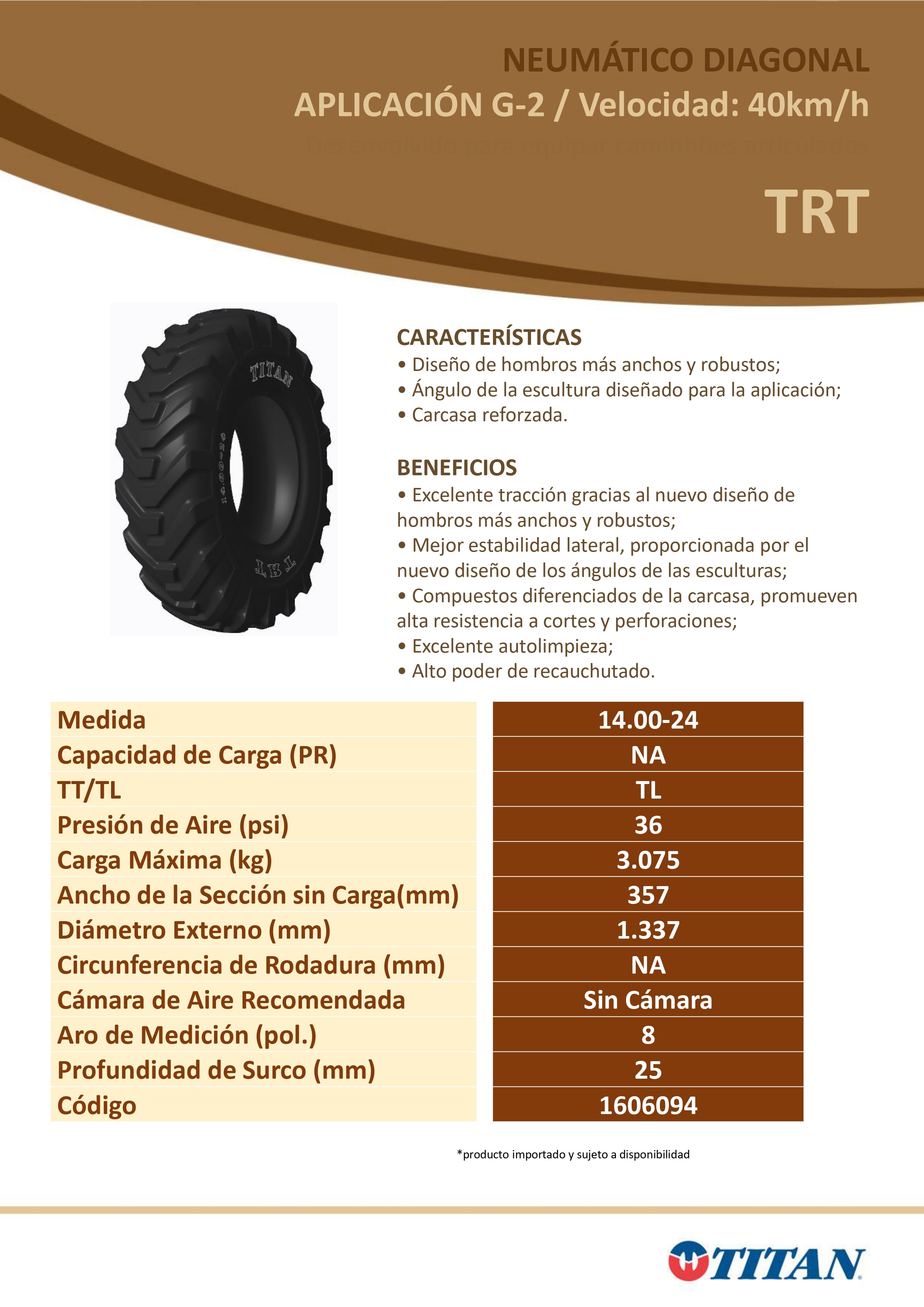 Llanta 14.00-24 G2 TRT 12PR TITAN TL