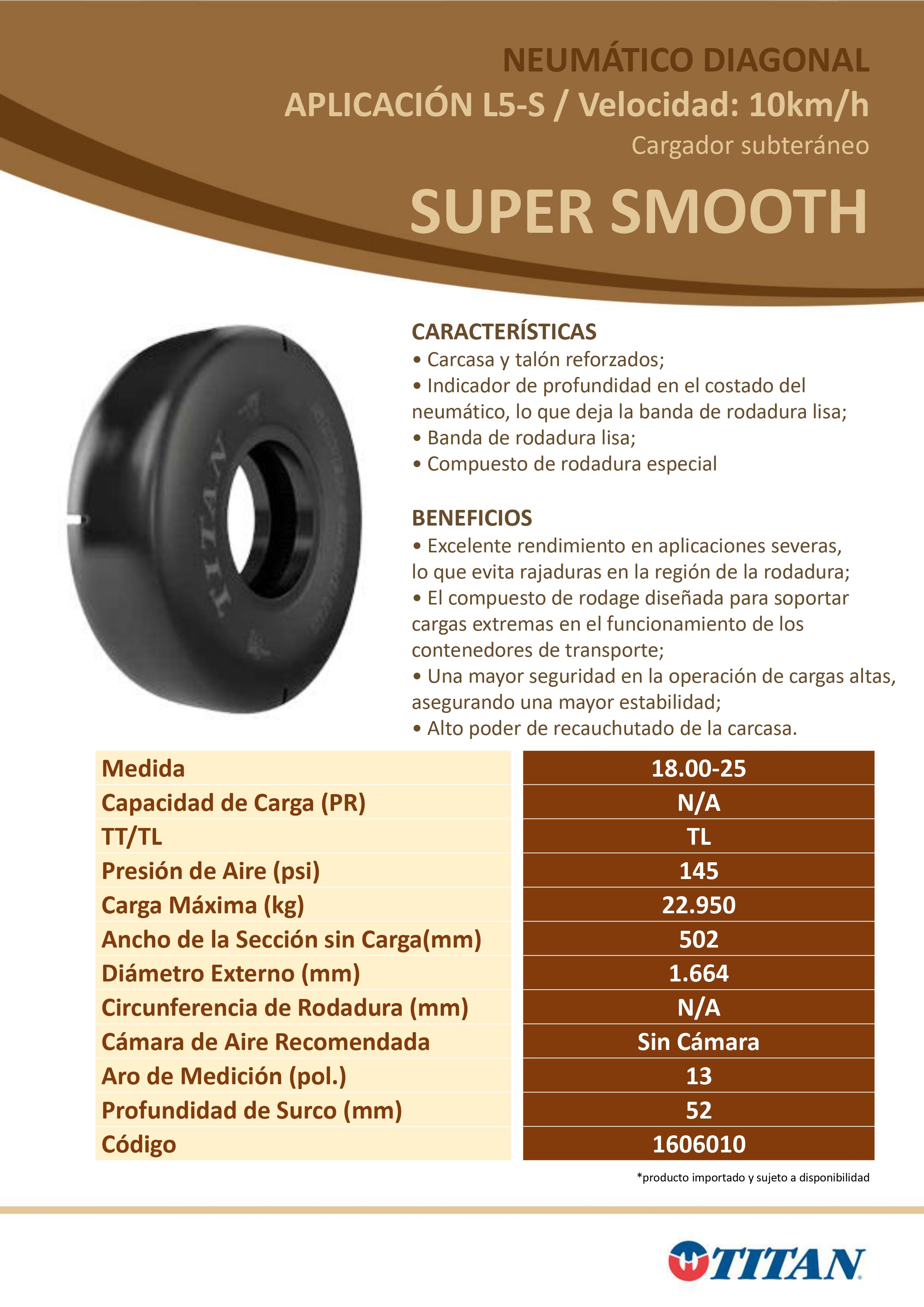 Llanta 18.00-25 L4S SUPER SMOOTH 40PR TITAN TL