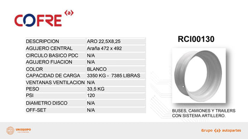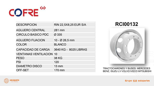 DESCRIPCION Es un rin metálico de alto desempeño, fabricado por la marca Cofre, especializado en aplicaciones para vehículos comerciales livianos y...
