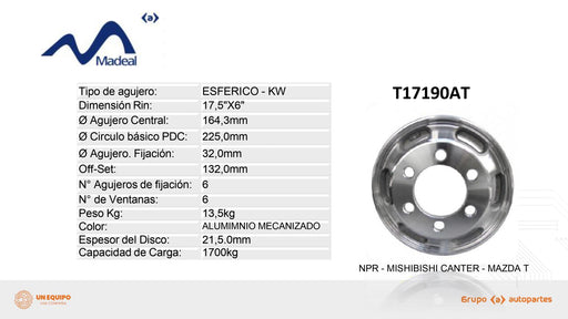 DESCRIPCION Diseñado para camiones livianos como el Chevrolet NPR o configuraciones tipo KW. Fabricado en aleación de alta resistencia, ofrece un d...
