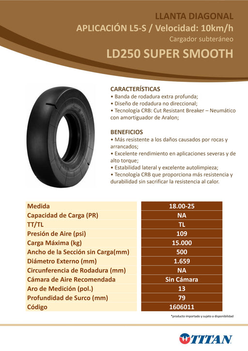 DESCRIPCIÓN es una llanta OTR (Off-The-Road) de construcción diagonal (bias), diseñada para uso en maquinaria pesada de movimiento de tierra como c...