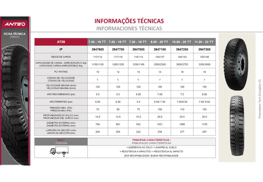 Llanta ANTEO 7.00-16CTT 113/112L 10 A. AT59