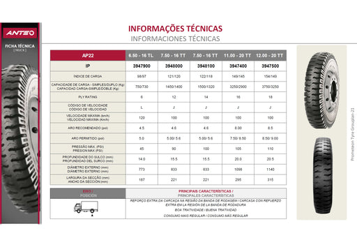 Llanta ANTEO 7.50-16CTT 122/118J 14 A. AP22