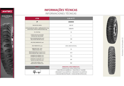 Llanta ANTEO 6.50-16CTT 108/107L 10 A. AT06