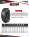Especificaciones clave que incluyen el ancho, el perfil, la construcción y el diámetro del rin.